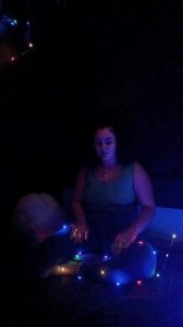 CucubaNación expanded to an intimate community art space lifting the lessons of Boricua bioluminescence to envision, embody a new liberated nation of light. Thinking back to genius Boricua artist Pepon Osorio’s store-front installations, I played with the possibility of expanding the CucubaNación concept beyond the canvas, spilling from the confines of the stretchers onto black walls in calligraphy, images, installations inspired by our bioluminescent boricuas. The lighting, mimicking tiny bioluminescent creatures that collectively join in a luminous force, would transform the space into a kind of portal, an intimate womb that you step into to reflect on darkness, share sparks, incubate ideas, expand on these with other light beings. Forced to postpone the opening celebration because of another extended power outage, our first event was a healing space of massage,