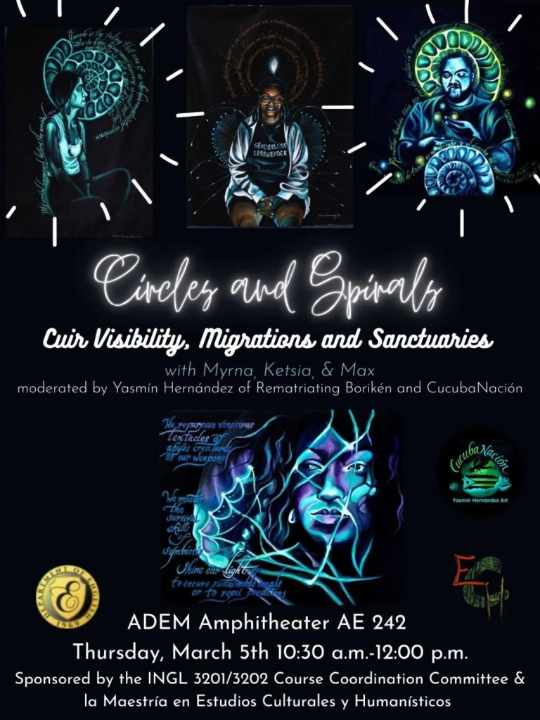 Panel celebrating queer voices of the Rematriation Journey. Universidad de Puerto Rico, Recinto de Mayaguez, Mayaguez, PR.